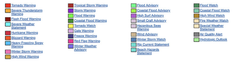 It also provides links to official weather sites such as the National Weather Service (NWS) and the National Hurricane Center (NHC), and popular regional media outlets.