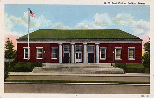 Historic postcard of the U. S. Post Office in Lufkin