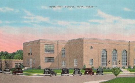 Historic postcard of Rusk High School